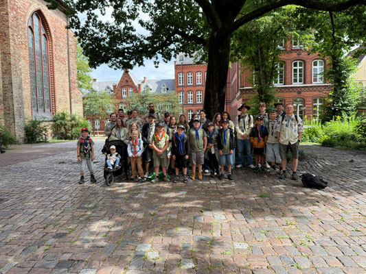 Ob ein Strandbesuch in Aabenraa, ein Ausflug nach Flensburg, Floß-Bau und Floß-Fahrt am nahegelegenen See, Löffel schnitzen, einen Becher mit Glut aushöhlen, Boule Meisterschaft, Batik, vom Lagerturm hüpfen, Popcorn vom Lagerfeuer, Lagerolympiade oder eine gruselige Nachtwanderung… trotz viel Regen stand das alles und noch viel mehr bei unserem diesjährigen Sommerlager in Dänemark auf dem Programm. Die Nachbarn haben sogar das Riesenrad gebaut, was wir uns bisher nicht getraut hatten... Dank der guten, alten Jurte konnten wir uns in regnerischen Phasen am Feuer, an einem mollig warmen und trockenen Ort aufhalten, aber wir konnten auch häufig die Sonne an der frischen Luft genießen. Auch wenn wir jeweils knapp 14 Std. in Bus, Zug oder am Bahnhof verbracht haben, war stets gute Laune geboten. Dafür vielen Dank an die ganze Gruppe! Vor allem von den Kleinsten war das eine super Leistung!